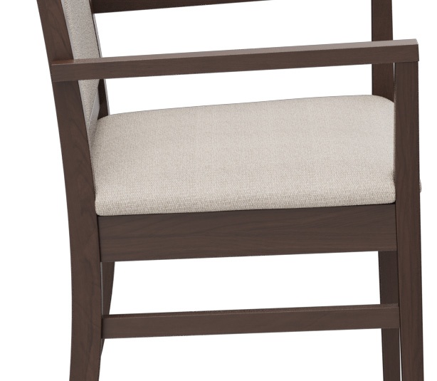 Le modèle Liah, avec ou sans accoudoirs, est intemporel et classique. Le design simple et moderne à la fois, avec une structure en bois de hêtre, teintée dans la couleur chêne ou noyer, crée une atmosphère accueillante. Les différentes hauteurs de dossier de la chaise et de la chaise à accoudoirs permettent de créer des concepts d’espace individuels. Ce modèle est confortable et, avec sa forme fonctionnelle et ergonomique, a de nombreuses utilisations dans le secteur de santé et de soins. Comme option, le modèle peut également être équipé de roulettes sur les pieds avant afin de pouvoir facilement pousser la personne assise à proximité de la table depuis l'arrière. Le revêtement est disponible dans différents matériaux ignifuges et faciles d’entretien, tels que Parotega, Paratexa, Marou, Addison et Sheldon, qui sont particulièrement adaptés au secteur de santé et de soins.Numéro d'article