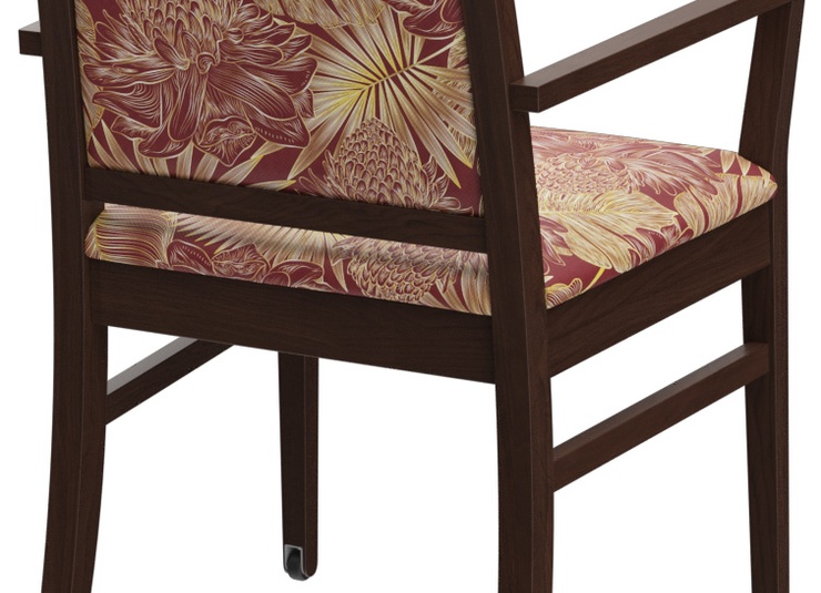 Le modèle Liah, avec ou sans accoudoirs, est intemporel et classique. Le design simple et moderne à la fois, avec une structure en bois de hêtre, teintée dans la couleur chêne ou noyer, crée une atmosphère accueillante. Les différentes hauteurs de dossier de la chaise et de la chaise à accoudoirs permettent de créer des concepts d’espace individuels. Ce modèle est confortable et, avec sa forme fonctionnelle et ergonomique, a de nombreuses utilisations dans le secteur de santé et de soins. Comme option, le modèle peut également être équipé de roulettes sur les pieds avant afin de pouvoir facilement pousser la personne assise à proximité de la table depuis l'arrière. Le revêtement est disponible dans différents matériaux ignifuges et faciles d’entretien, tels que Parotega, Paratexa, Marou, Addison et Sheldon, qui sont particulièrement adaptés au secteur de santé et de soins.Numéro d'article