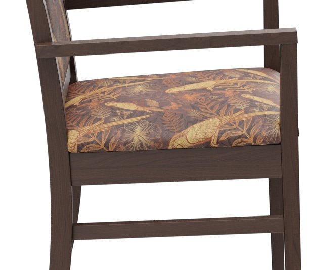 Le modèle Liah, avec ou sans accoudoirs, est intemporel et classique. Le design simple et moderne à la fois, avec une structure en bois de hêtre, teintée dans la couleur chêne ou noyer, crée une atmosphère accueillante. Les différentes hauteurs de dossier de la chaise et de la chaise à accoudoirs permettent de créer des concepts d’espace individuels. Ce modèle est confortable et, avec sa forme fonctionnelle et ergonomique, a de nombreuses utilisations dans le secteur de santé et de soins. Comme option, le modèle peut également être équipé de roulettes sur les pieds avant afin de pouvoir facilement pousser la personne assise à proximité de la table depuis l'arrière. Le revêtement est disponible dans différents matériaux ignifuges et faciles d’entretien, tels que Parotega, Paratexa, Marou, Addison et Sheldon, qui sont particulièrement adaptés au secteur de santé et de soins.Numéro d'article